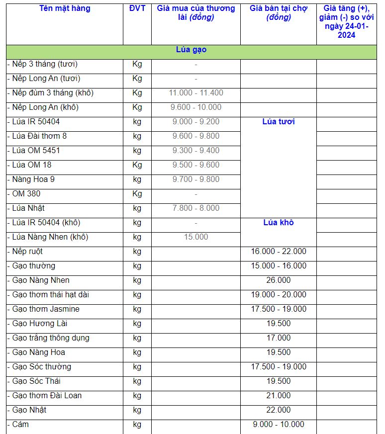 - Giá lúa gạo ngày 25.1.2024 tại đây