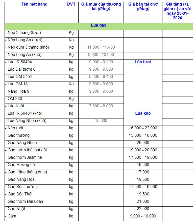 Giá lúa gạo trong nước hôm nay 29.1: