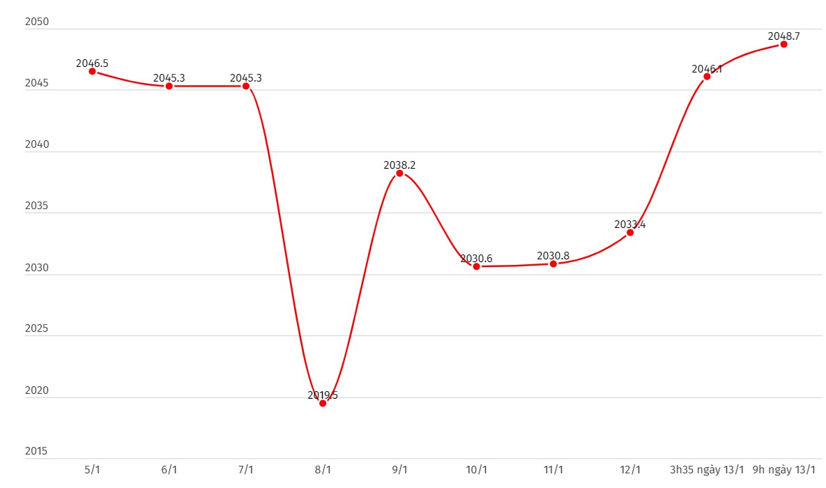 Tính đến 9h30 hôm nay, giá vàng thế giới niêm yết trên Kitco ở mức 2.048,7 USD/ounce, tăng 15,3 USD/ounce so với mở cửa phiên giao dịch sáng qua.