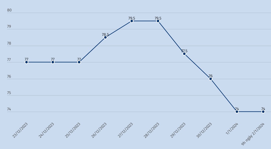 Ghi nhận lúc 9h10 hôm nay được Tập đoàn DOJI niêm yết chiều mua vào ở ngưỡng 69 triệu đồng/lượng; giá bán ra là 74 triệu đồng/lượng.