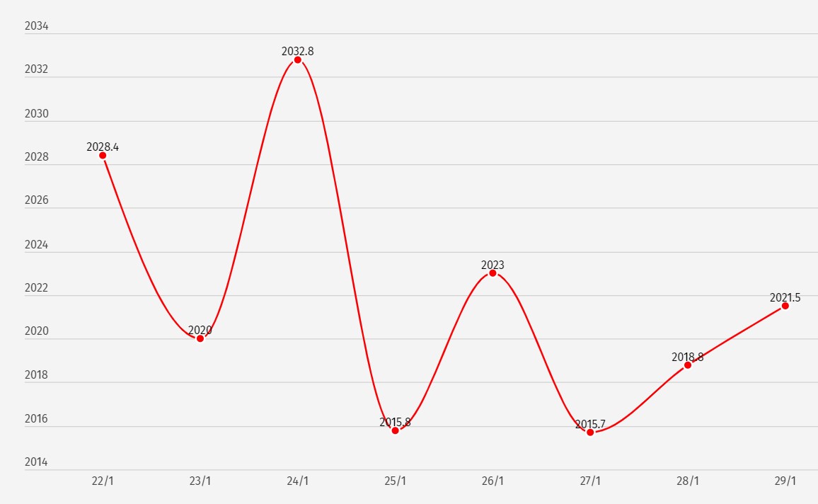 Diễn biến giá vàng thế giới tuần qua. Đơn vị: Triệu đồng/lượng. Đồ họa: Khương DuyGiá vàng thế giới mở cửa phiên giao dịch sáng nay niêm yết trên Kitco ở ngưỡng 2.021,5 USD/ounce, tăng 2,7 USD/ounce so với mở cửa phiên giao dịch trước.