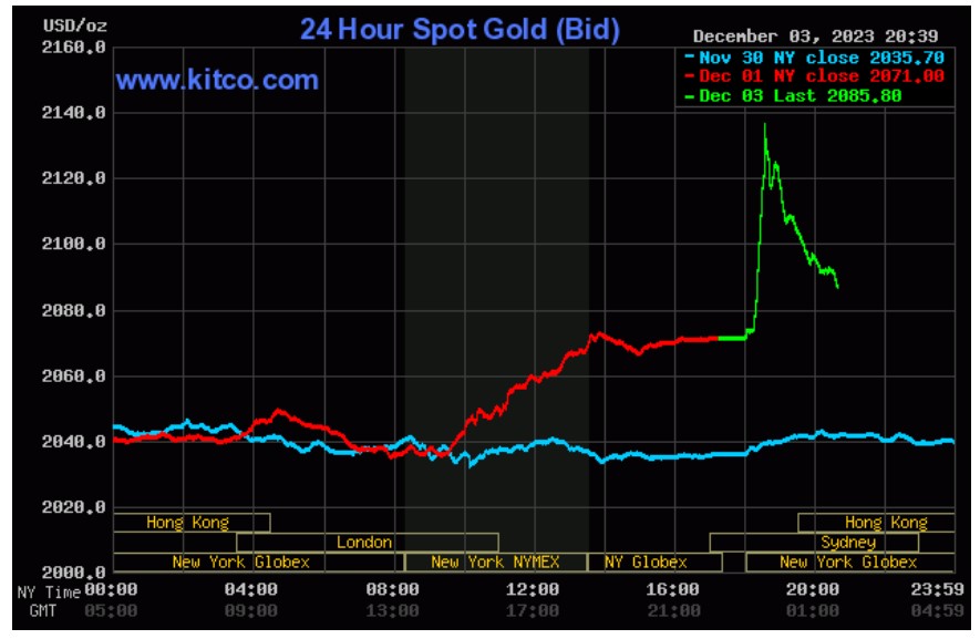 Diễn biến vàng thế giới. Nguồn: KitcoGiá vàng thế giới tính đến 8h39 hôm nay, niêm yết trên Kitco ở mức 2.085,8 USD/ounce. So với mở cửa phiên giao dịch trước, giá vàng thế giới tăng 14,8 USD/ounce.
