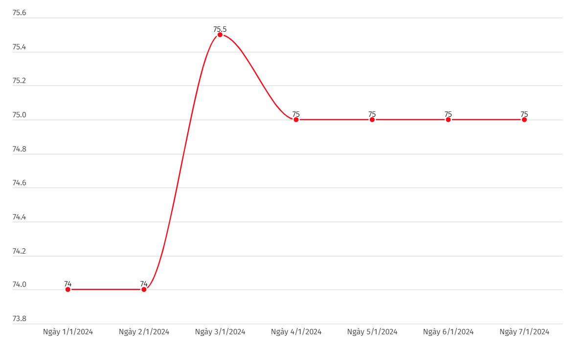 Cụ thể, nếu mua vàng tại Tập đoàn DOJI vào phiên 31.12.2023 với giá 74 triệu đồng/lượng và bán ra vào phiên hôm nay (7.1.2024), nhà đầu tư thu về khoản lỗ 2 triệu đồng/lượng. Tương tự, người mua vàng tại Công ty VBĐQ Sài Gòn SJC cũng lỗ 2 triệu đồng/lượng.