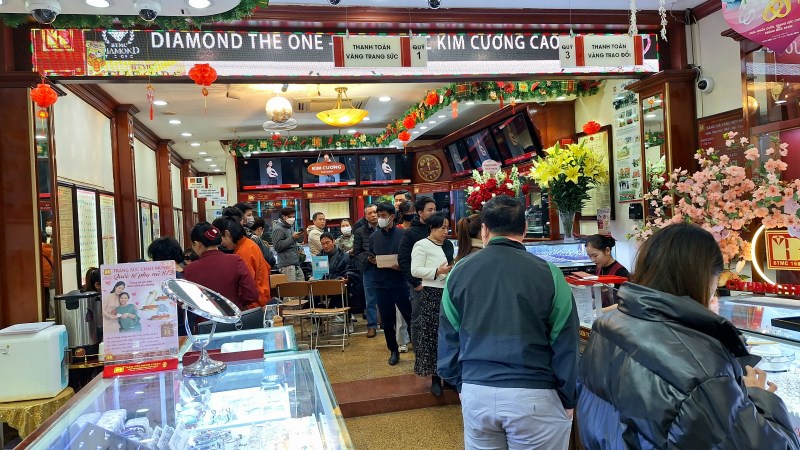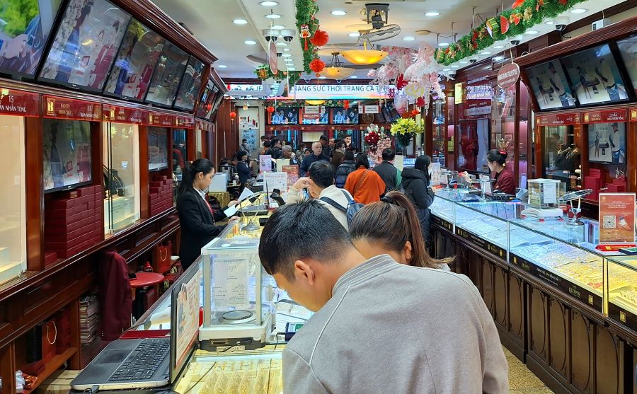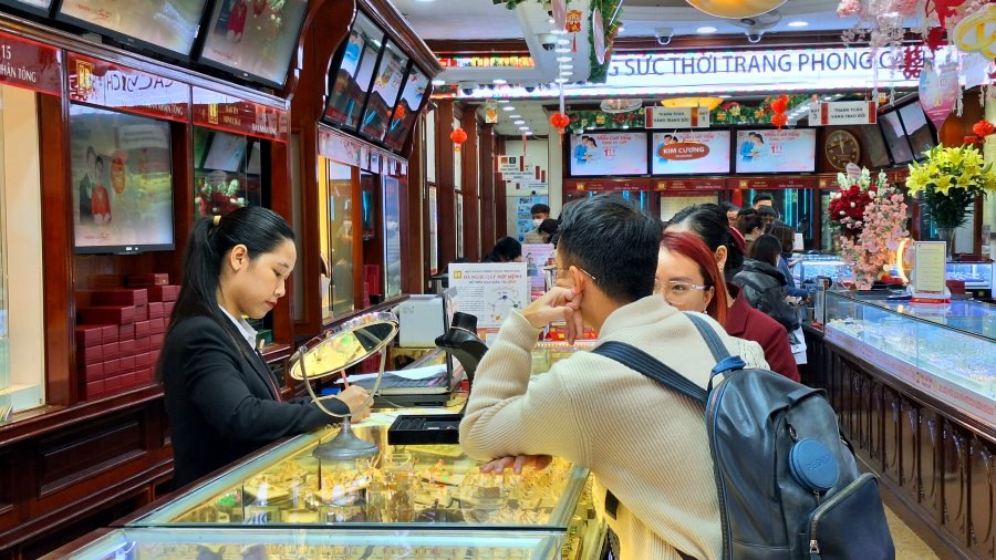 Chị Nguyễn Ngọc Huyền (27 tuổi - nhân viên bán hàng tại cửa hàng vàng trên đường Trần Nhân Tông, quận Hai Bà Trưng, TP. Hà Nội) cho biết: "Giá vàng đang liên tục lập đỉnh mới. Khách hàng cũng đến để bán vàng chốt lãi. Dù là đầu năm nhưng mọi người thấy giá vàng đang tốt nên đến bán rất đông".