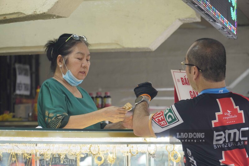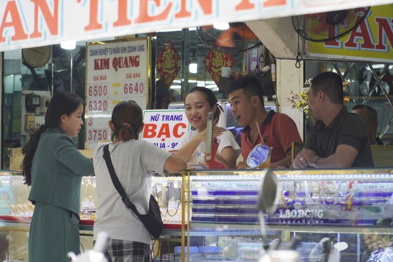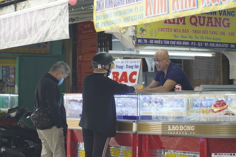 Chủ một cửa hàng vàng bạc tại chợ Hoà Bình chia sẻ: "Khách chủ yếu đến xem và mua vàng cho dịp 8.3. Lượng khách đến bán vàng để chốt lời cũng không quá đông như những đợt giá vàng lên cao khác".