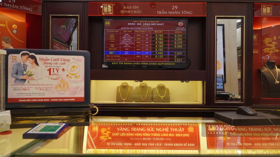 Đầu giờ chiều 21.12, giá vàng miếng của SJC tăng 200.000 đồng/lượng ở cả hai chiều so với đầu giờ sáng, lên mức 74,6 triệu đồng/lượng mua vào và 75,62 triệu đồng/lượng bán ra.