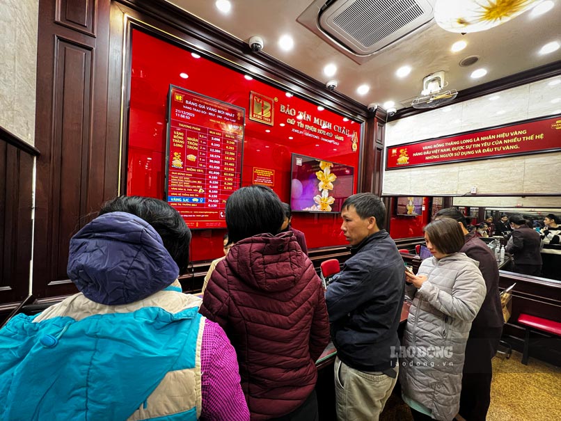 Theo ghi nhận tại cửa hàng Bảo Tín Minh Châu trên phố Trần Nhân Tông (Hà Nội), khách đến khá đông và nhiều người cho biết họ đang muốn bán vàng khi giá lên cao.