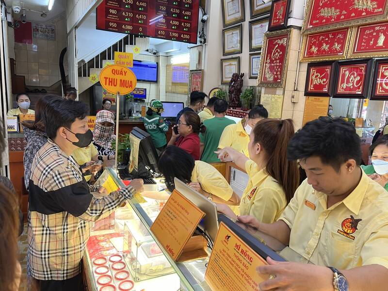 Ngày 6.3 tại các cửa hàng vàng bạc lớn tại TPHCM chật kín khách đến giao dịch, nhiều khách đến bán chốt lời và có cả khách mua vào. Nhân viên tại các cơ sở kinh doanh phải liên tục phân luồng khách hàng đến mua bán để tránh tình trạng chen lấn xô đẩy.