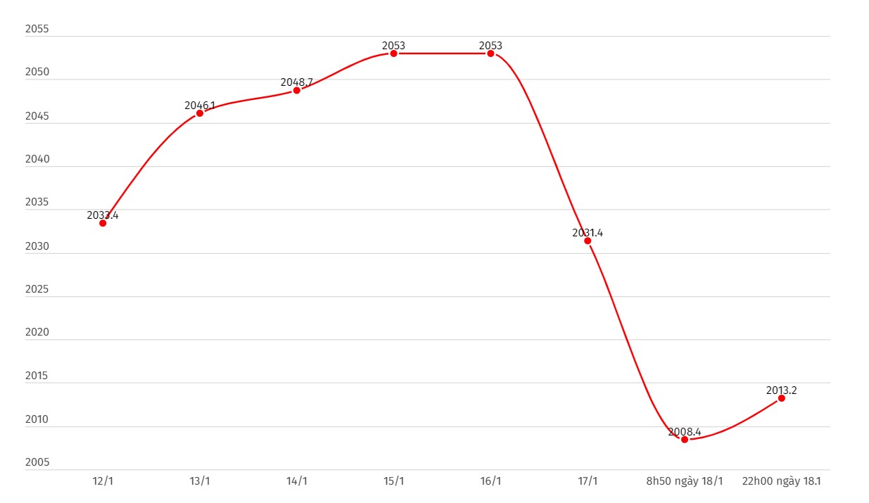 Trước dữ liệu kinh tế đáng thất vọng này, thị trường vàng vẫn không có nhiều phản ứng. Giá vàng tương lai tháng 2 được giao dịch lần cuối ở mức 2.012 USD/ounce, tăng 0,27% trong ngày.