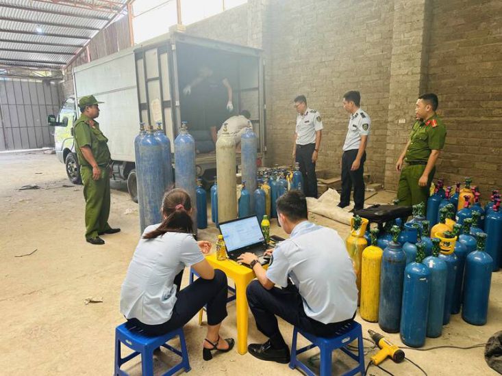Kho hàng chứa bình bóng cười được các đối tượng rao bán trên mạng xã hội. Ảnh: Quản lý thị trường Thái NguyênCuối năm là dịp cao điểm nở rộ tình trạng buôn lậu, gian lận thương mại. Những mánh khóe lừa đảo của các đối tượng hết sức tinh vi, biến tướng khôn lường. Đặc biệt, nhiều địa phương miền núi đã trở thành đích đến, mảnh đất màu mỡ cho tình trạng này.