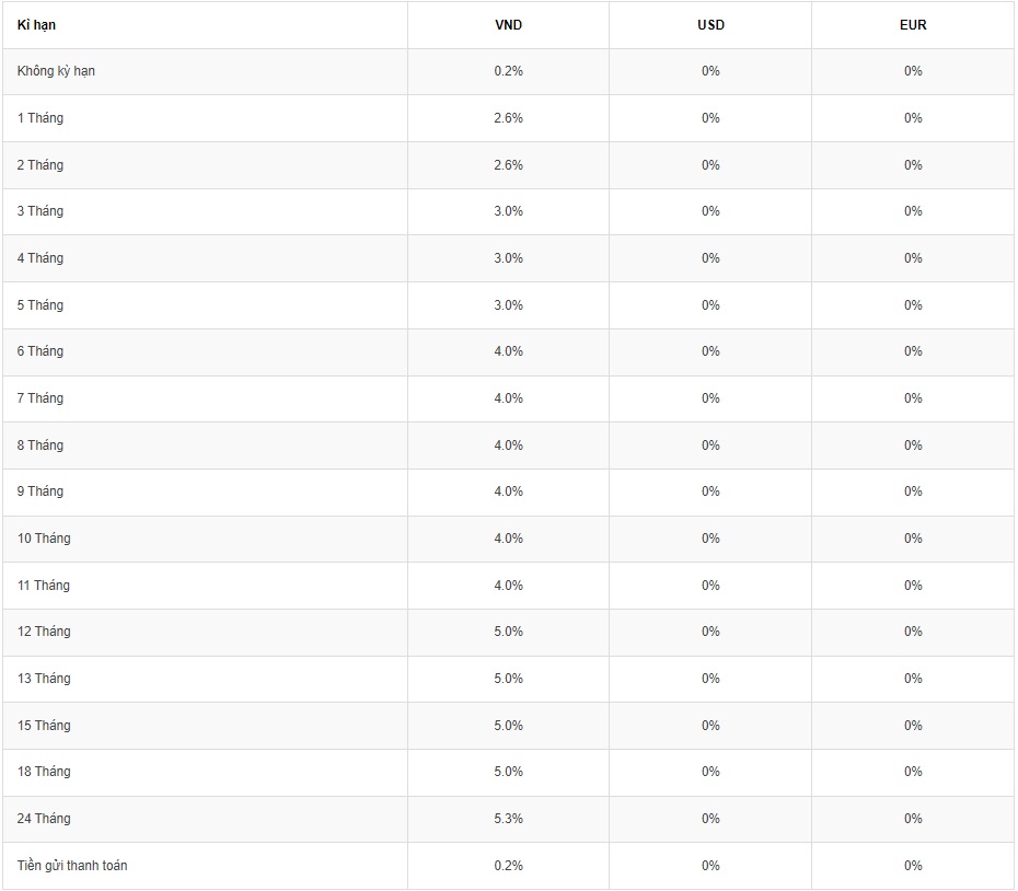 Khách hàng gửi tiền không kỳ hạn và tiền gửi thanh toán sẽ nhận lãi suất ở mức 0,2%/năm.