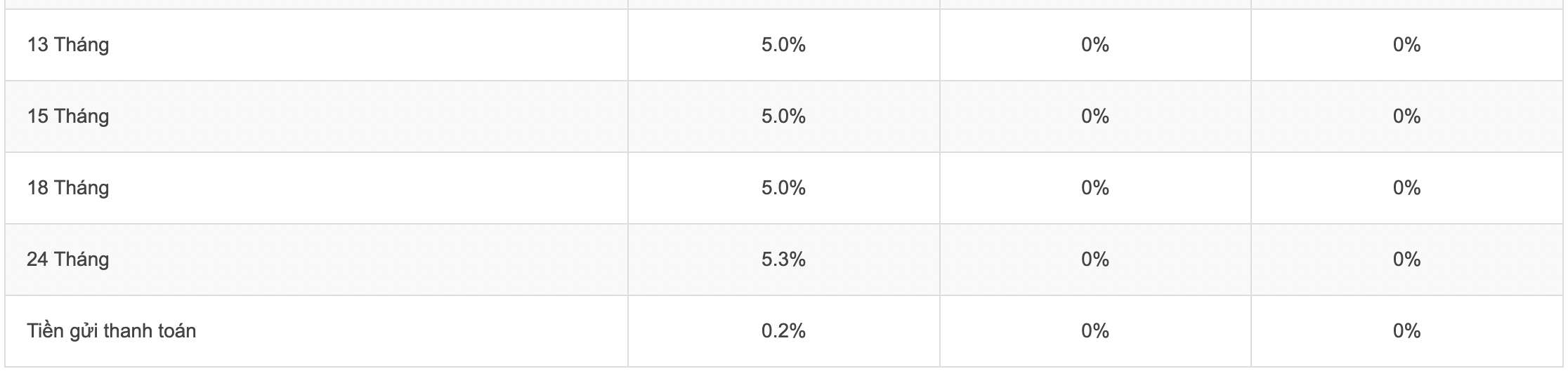 * Thông tin về lãi suất chỉ mang tính chất tham khảo và có thể thay đổi trong từng thời kỳ. Vui lòng liên hệ điểm giao dịch ngân hàng gần nhất hoặc hotline để được tư vấn cụ thể.