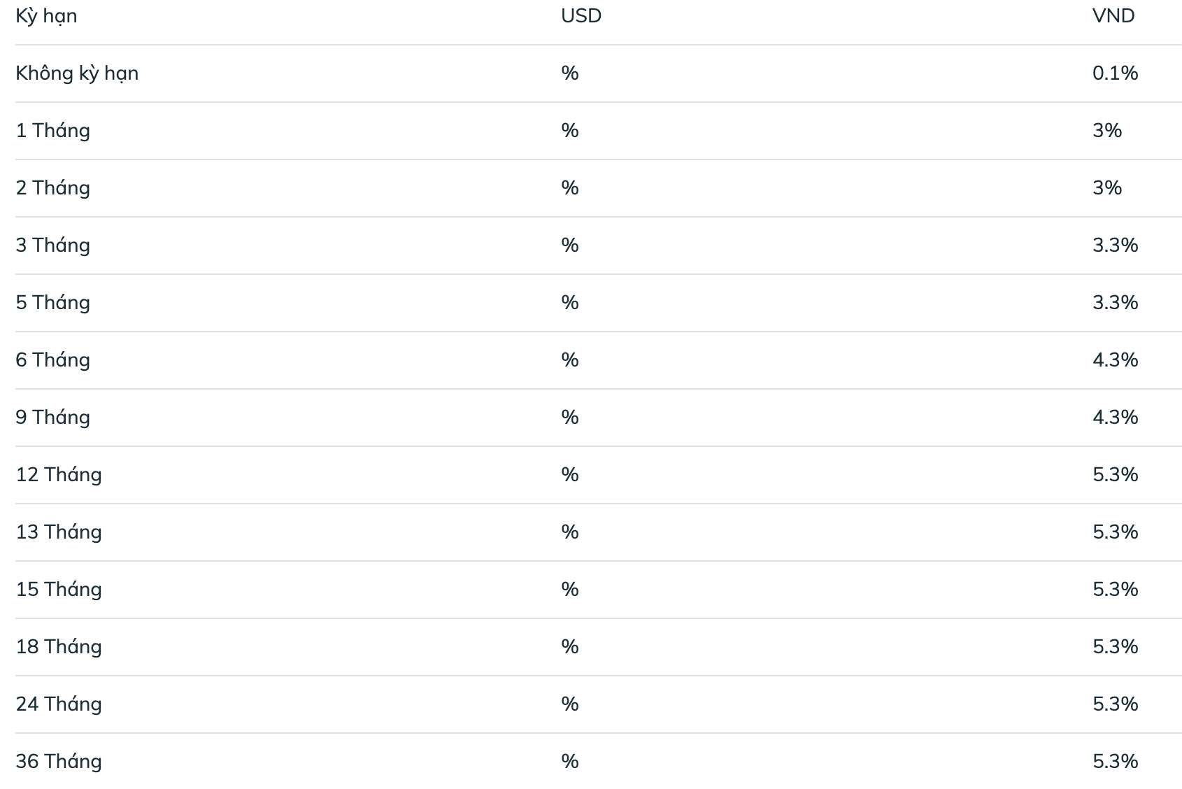 * Thông tin về lãi suất chỉ mang tính chất tham khảo và có thể thay đổi trong từng thời kỳ. Vui lòng liên hệ điểm giao dịch ngân hàng gần nhất hoặc hotline để được tư vấn cụ thể.