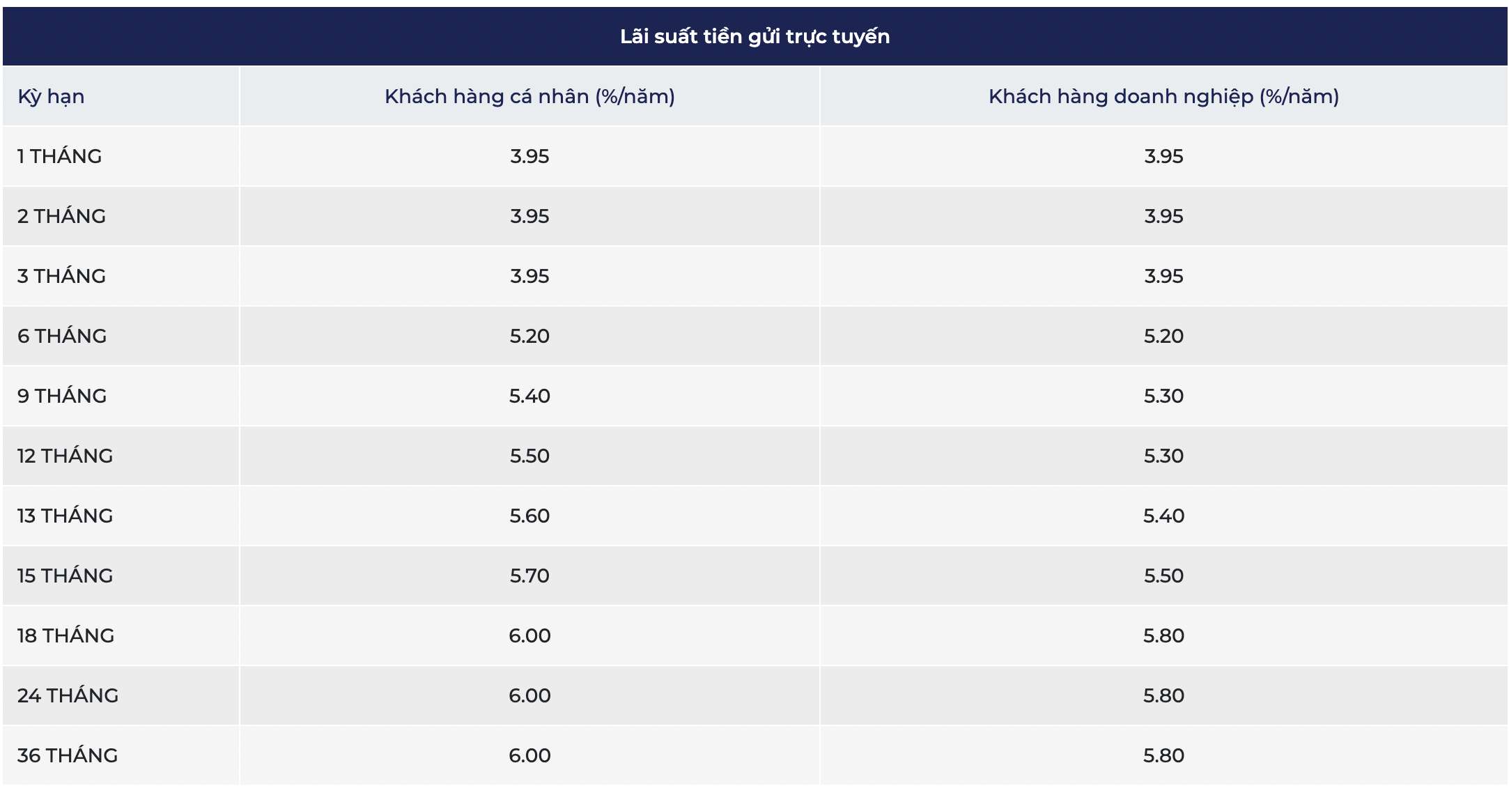 * Thông tin về lãi suất chỉ mang tính chất tham khảo và có thể thay đổi trong từng thời kỳ. Vui lòng liên hệ điểm giao dịch ngân hàng gần nhất hoặc hotline để được tư vấn cụ thể.