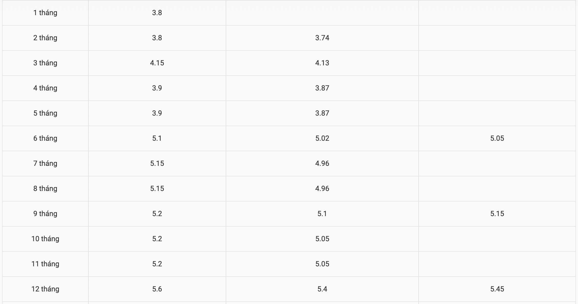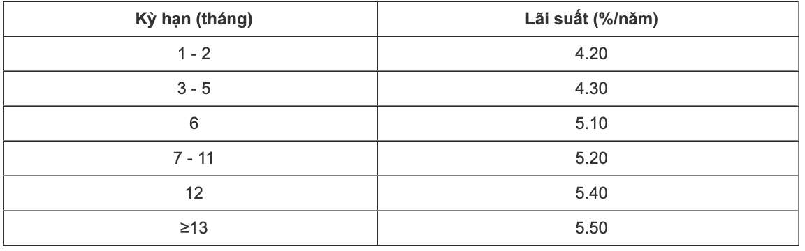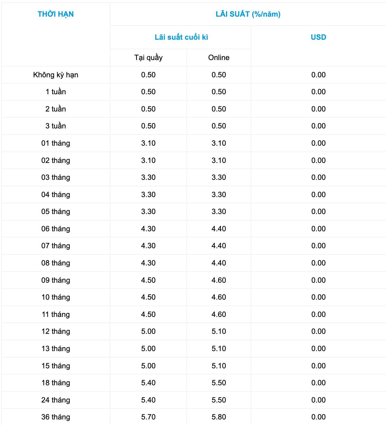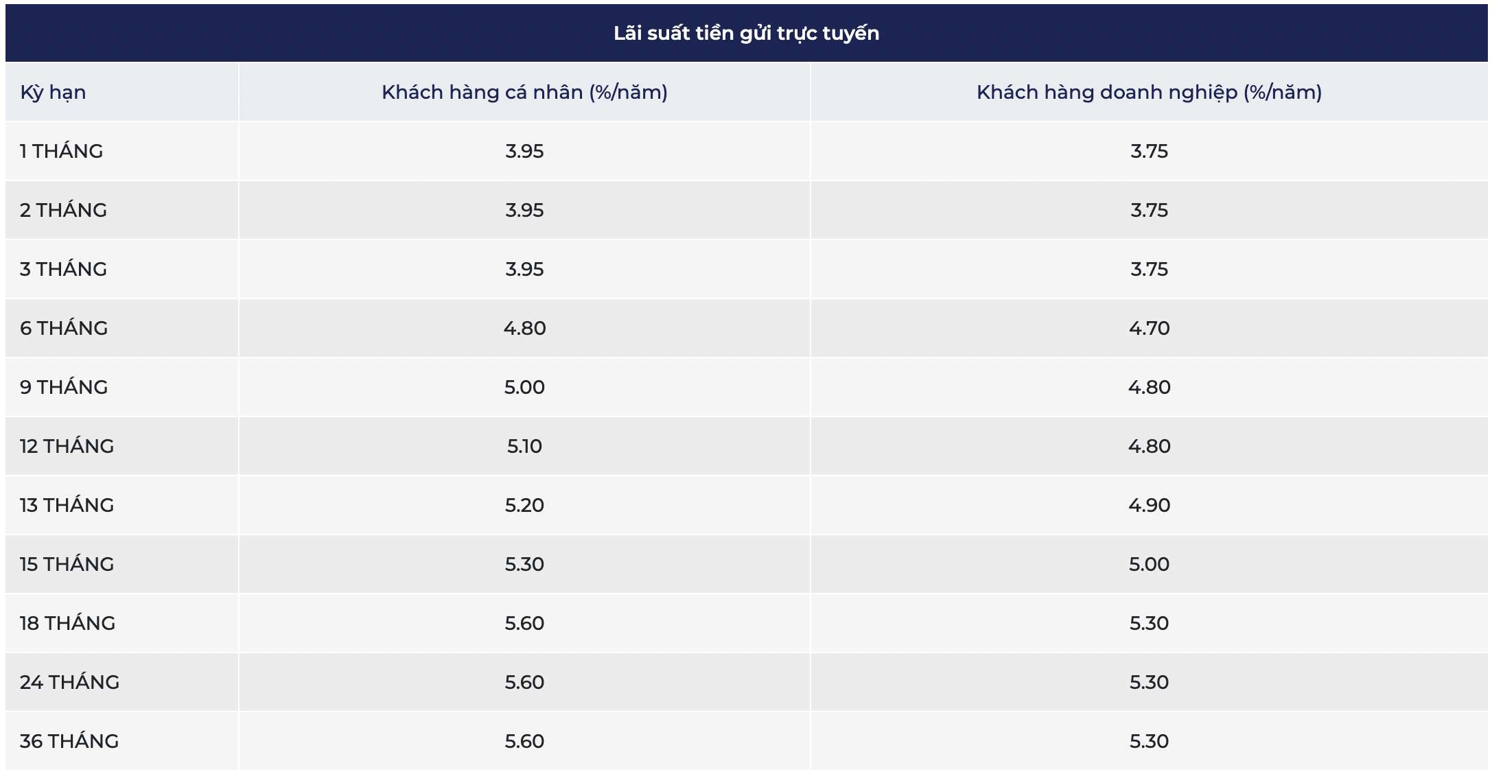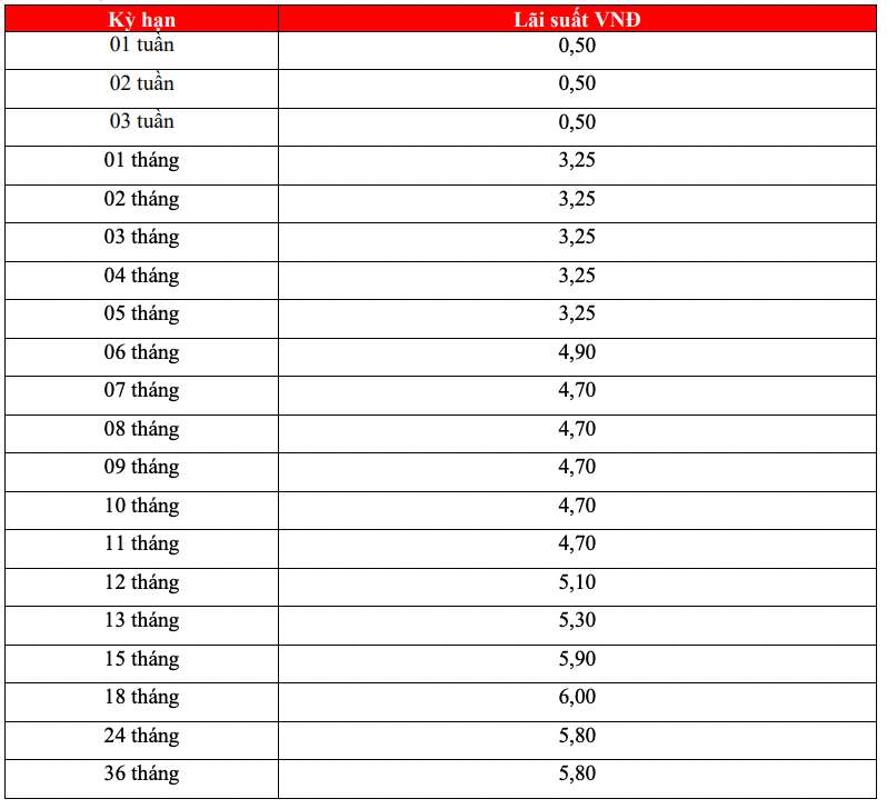 * Thông tin về lãi suất chỉ mang tính chất tham khảo và có thể thay đổi trong từng thời kỳ. Vui lòng liên hệ điểm giao dịch ngân hàng gần nhất hoặc hotline để được tư vấn cụ thể.