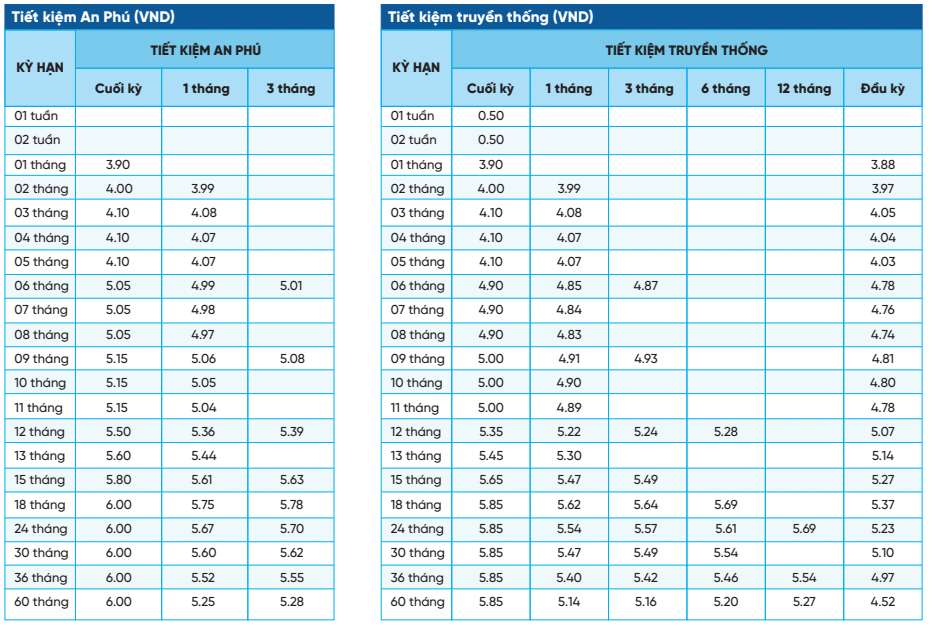 Khách hàng gửi tiền tại NCB 6 tháng nhận lãi suất cao nhất 5,05%/năm khi gửi tiết kiệm An Phú. Khách hàng gửi tiền truyền thống nhận lãi suất thấp hơn ở mức 4,9%/năm.
