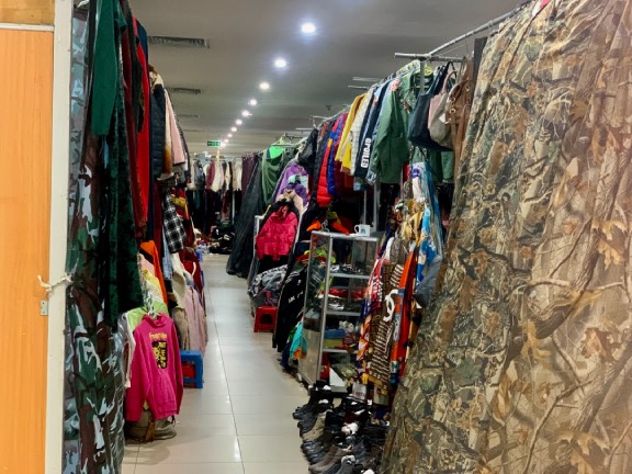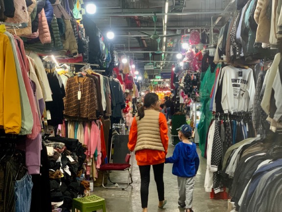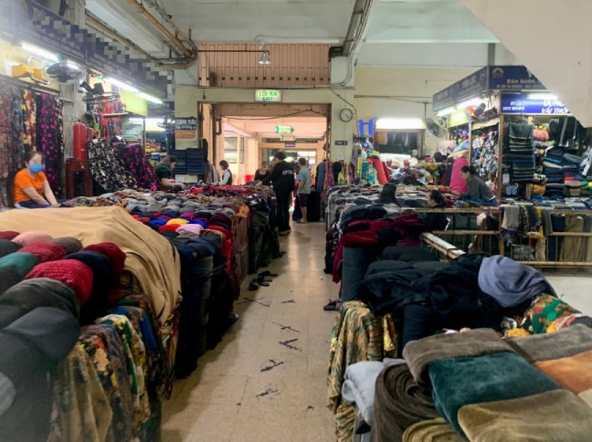 Những cửa hàng quần áo tại chợ Mơ không thu hút được nhiều khách hàng. Ảnh: Nhật Minh Nguồn: https://laodong.vn/thi-truong/hang-loat-khu-cho-dong-duc-mot-thoi-roi-vao-canh-diu-hiu-du-tet-can-ke-1289542.ldo