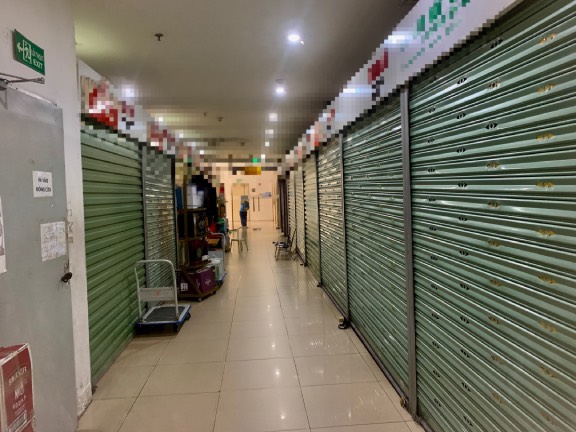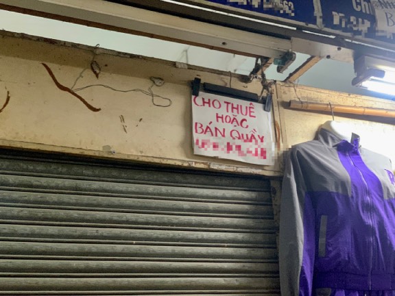 Nhiều kiốt treo biển bán hoặc nhượng mặt bằng. Những cửa hàng quần áo, giày dép không thu hút được nhiều khách hàng.