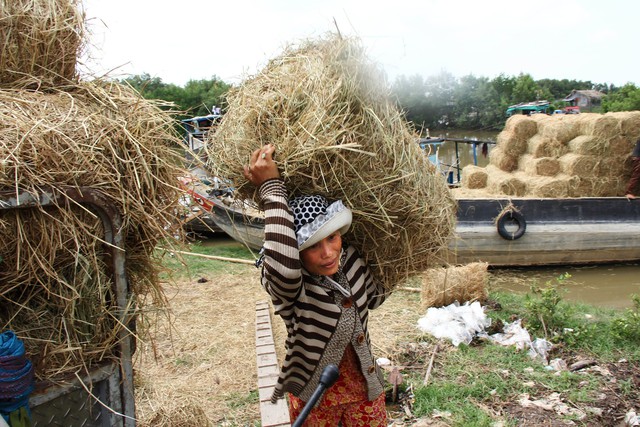 Người nuôi gia súc số lượng lớn mua rơm cuộn về trữ vì trong những tháng cao điểm mặn rơm sẽ tăng giá cao