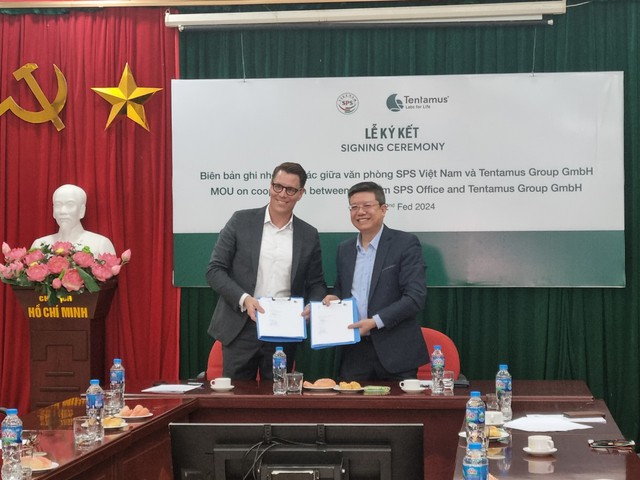 TS Jochen Peter Zoller, Tổng giám đốc Tập đoàn Tentamus, và Giám đốc Văn phòng SPS Việt Nam Lê Thanh Hòa ký kết biên bản hợp tác