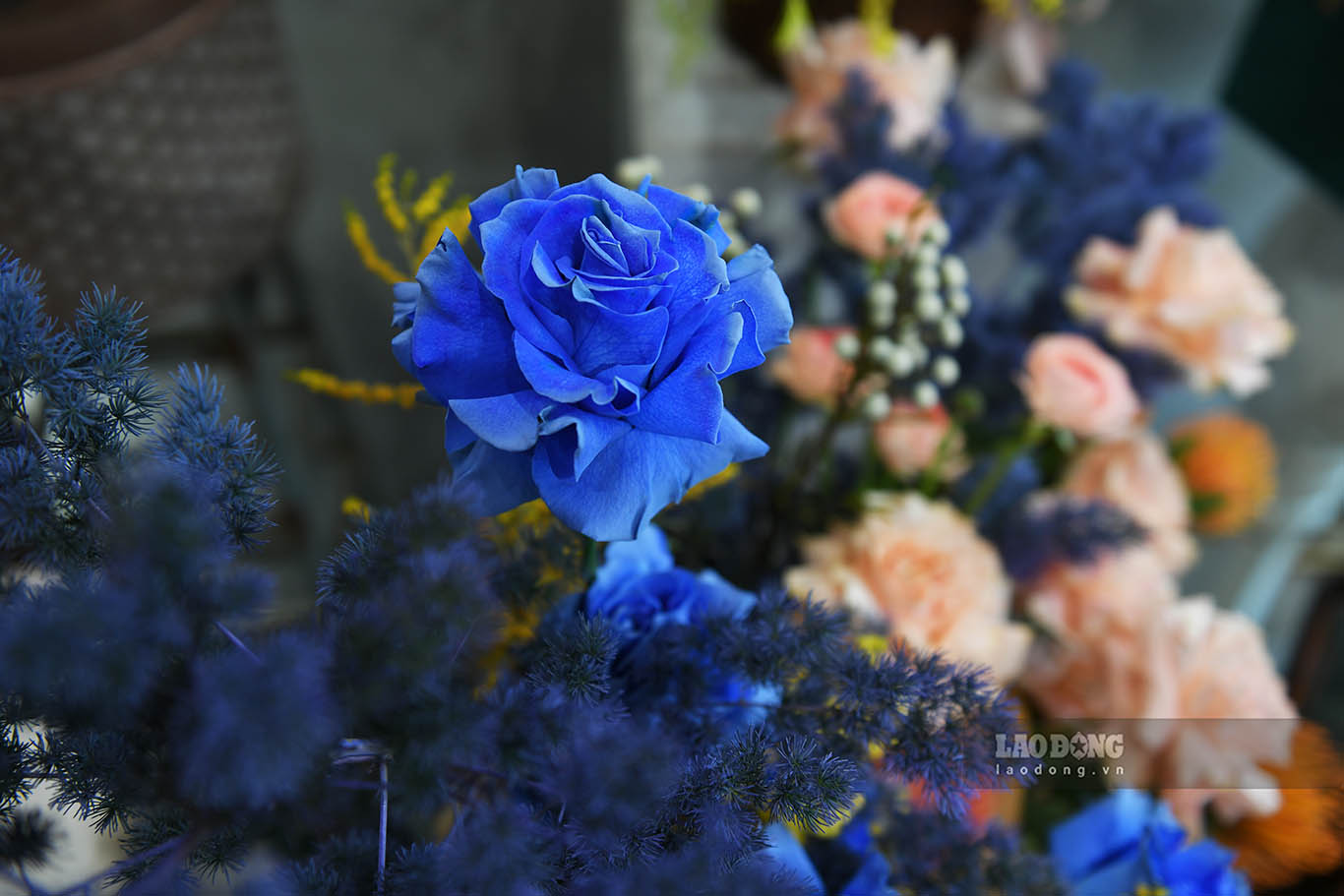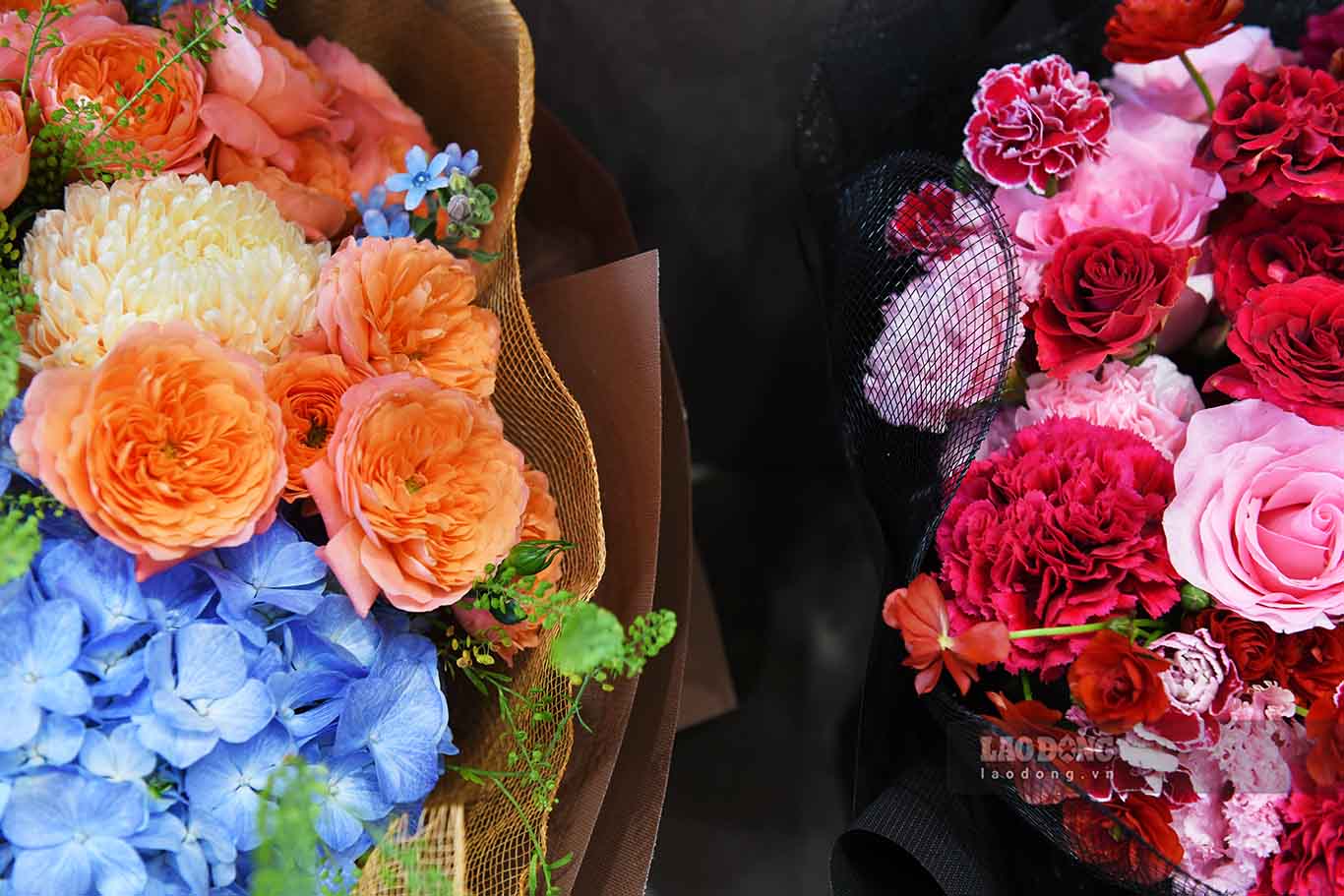 “Các loại hoa nhập khẩu từ Ecuador, Hà Lan như tulip, cẩm tú cầu, hoa hồng, peony với tông màu hồng, tím, xanh blue hay một số hoa dị thảo như king protea, ánh trăng, dephinium, alium, scabiosa... rất đẹp mắt, thường được nhiều khách hàng ưa chuộng, lựa chọn.“, một chủ hàng hoa cho hay.