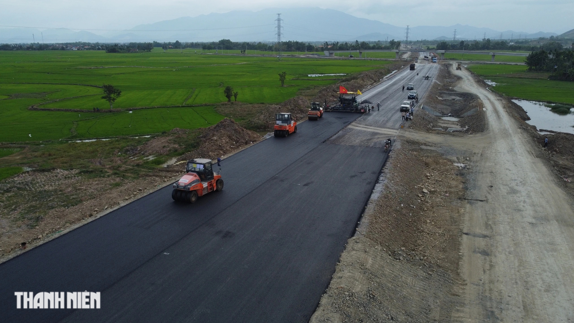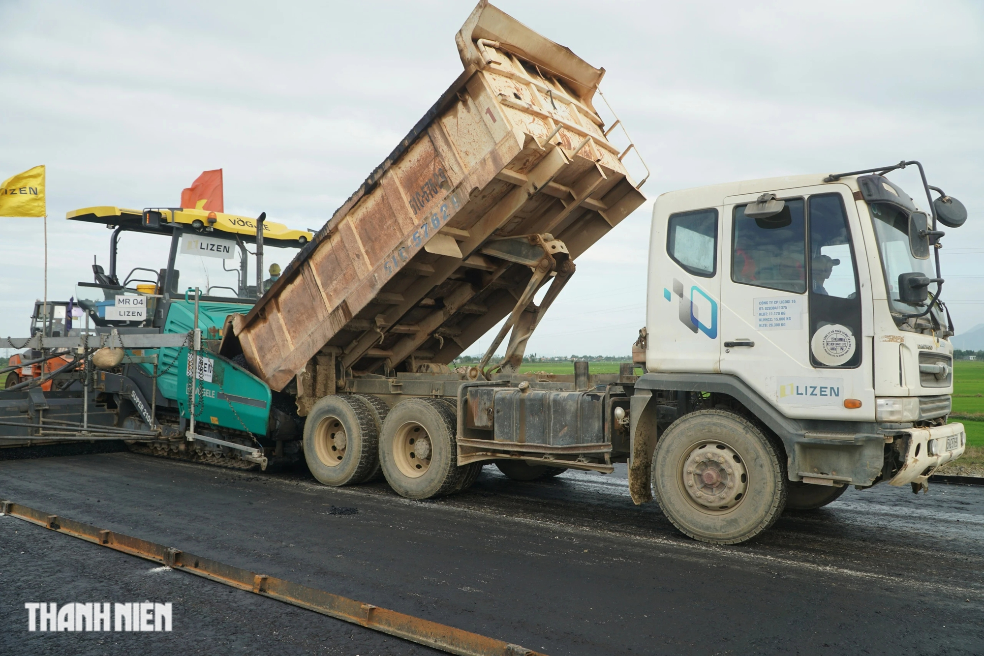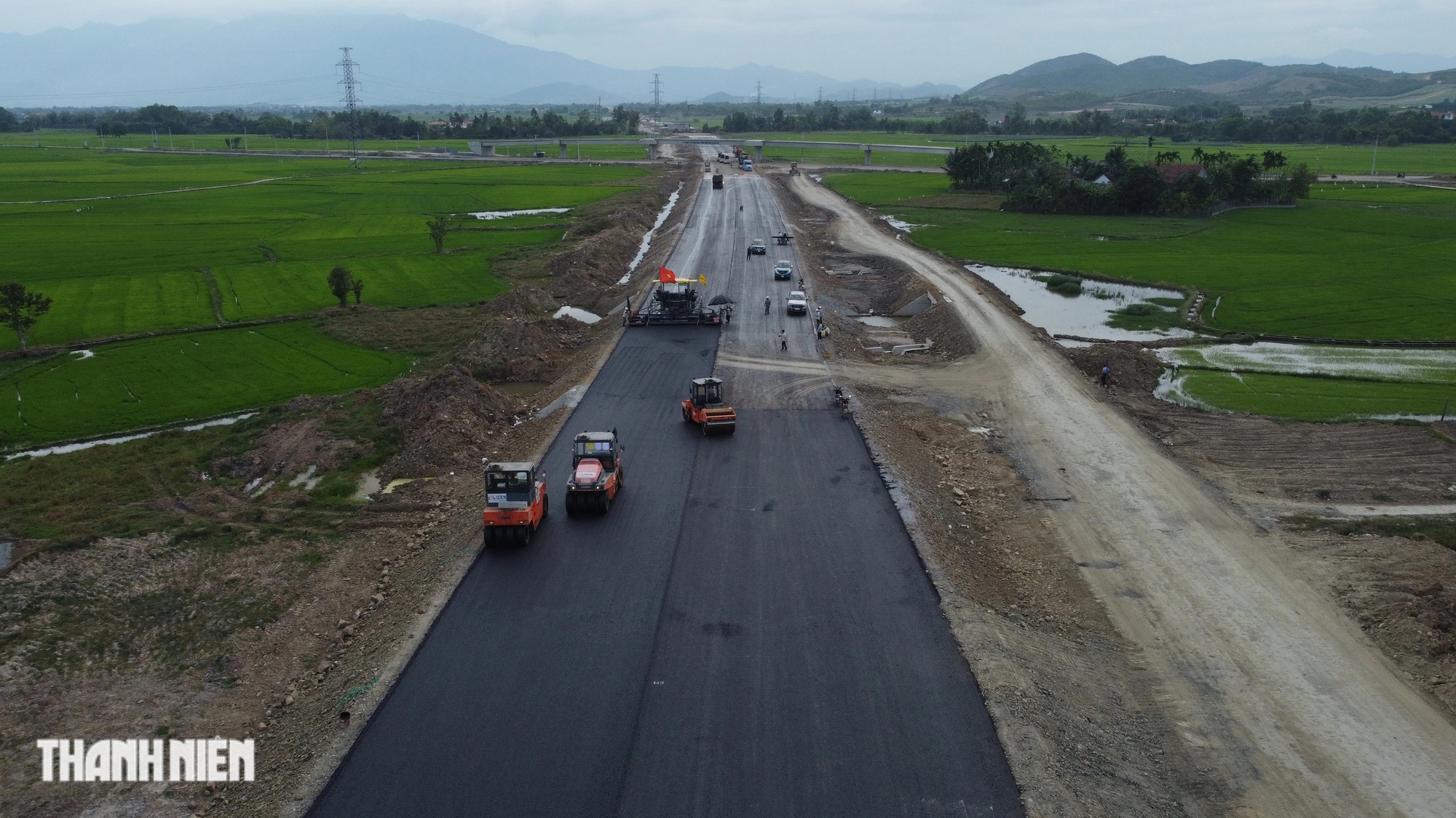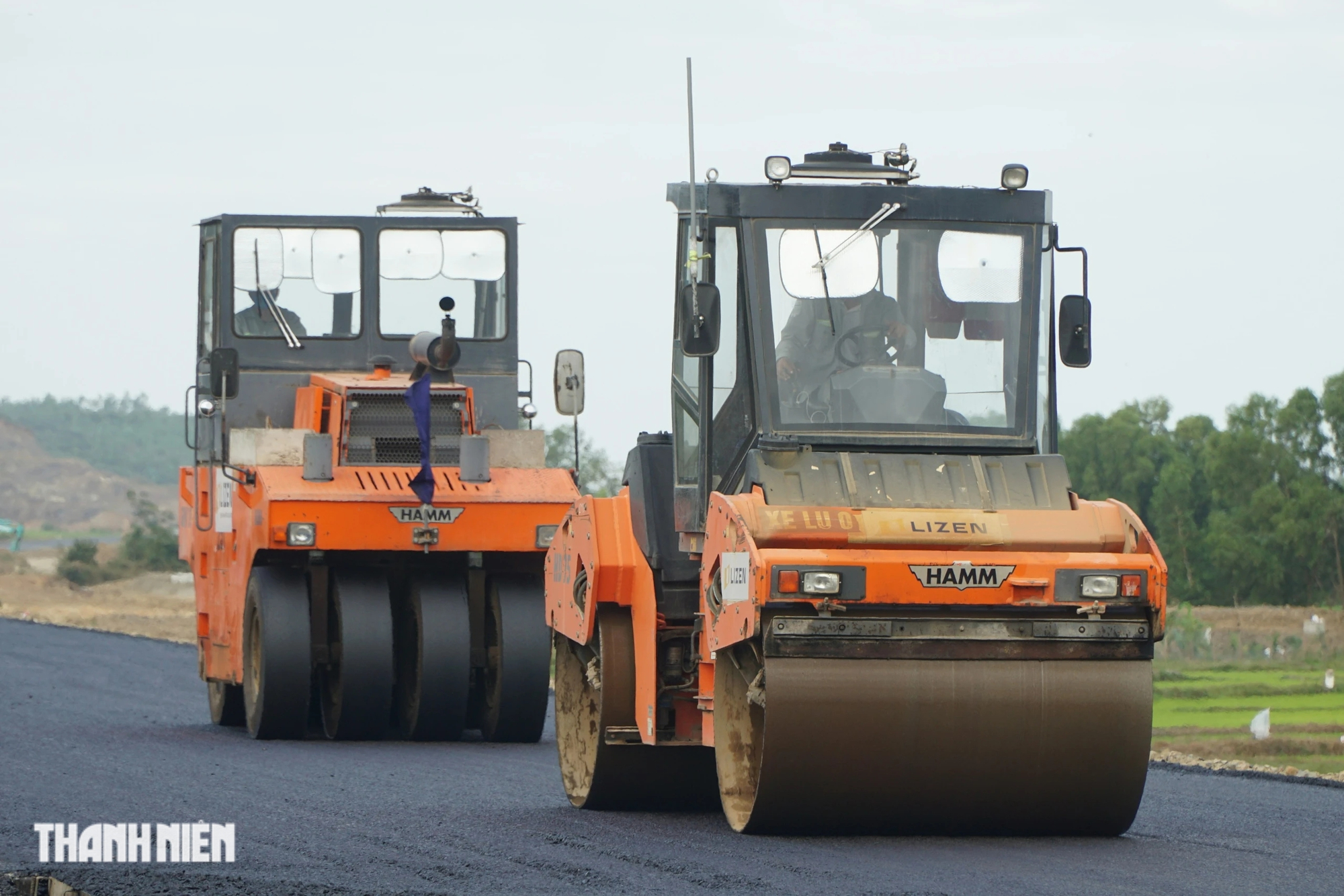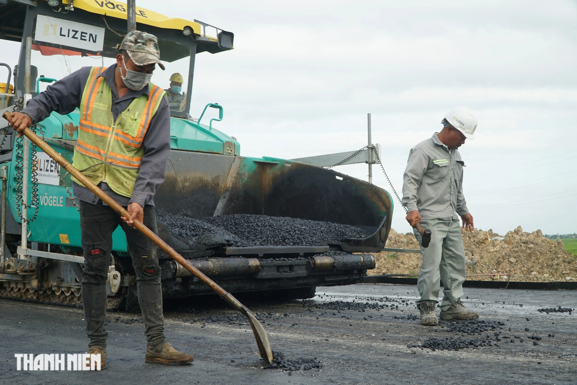Hiện nhà thầu này đang tập trung trải thảm nhựa, gấp rút hoàn thành để kịp tiến độ