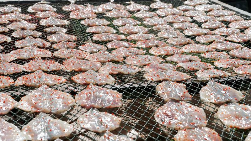 Sản phẩm khô ở Trần Đề (Sóc Trăng) được chế biến thủ công, đảm bảo an toàn vệ sinh thực phẩm. Ảnh: Phương AnhCá khô Trần Đề được chế biến hoàn toàn bằng thủ công, chỉ dùng các nguyên liệu ướp cơ bản như muối, đường, bột ớt; có loại chỉ cần làm sạch, xẻ mỏng phơi khô để giữ nguyên hương vị. Để giữ uy tín bà con luôn chú ý đảm bảo an toàn vệ sinh thực phẩm trong các công đoạn nhằm cung cấp cho thị trường những mặt hàng khô chất lượng với giá cả phải chăng.