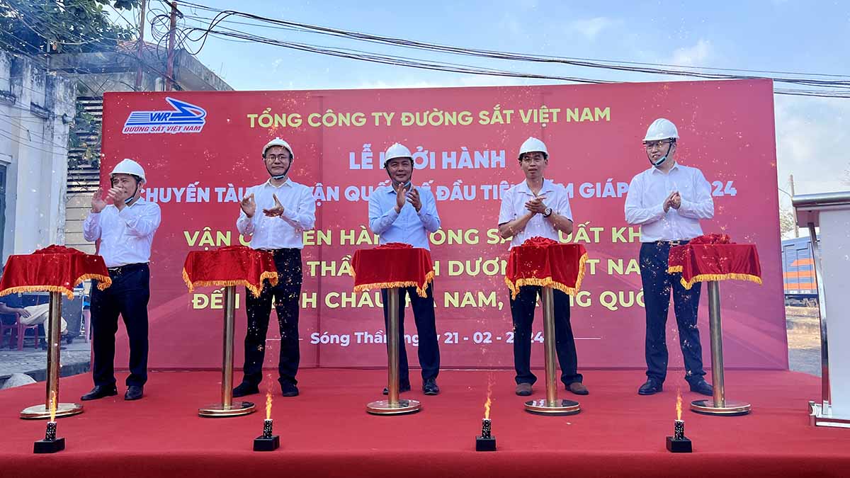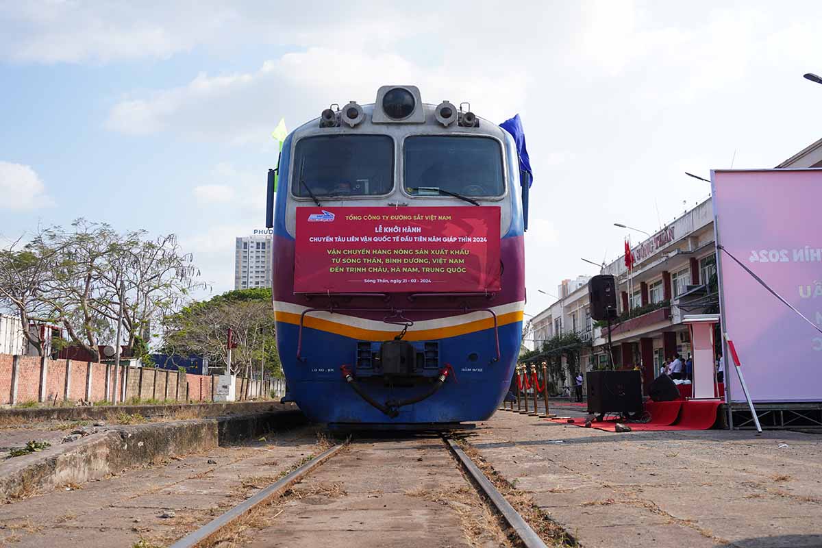 Chiều 21.2, Tổng Công ty Đường sắt Việt Nam phối hợp với UBND tỉnh Bình Dương tổ chức “Lễ khởi hành chuyến tàu liên vận quốc tế đầu tiên năm Giáp Thìn 2024 từ ga Sóng Thần đi Trung Quốc”, xuất phát tại Ga Sóng Thần (tỉnh Bình Dương).