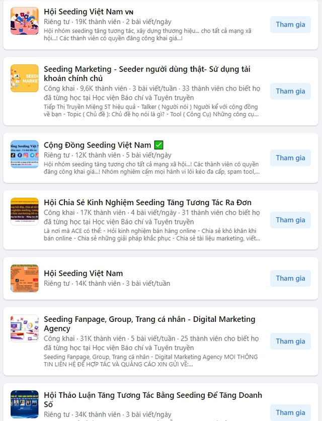 Hàng chục nhóm cộng đồng seeding với trăm nghìn thành viên