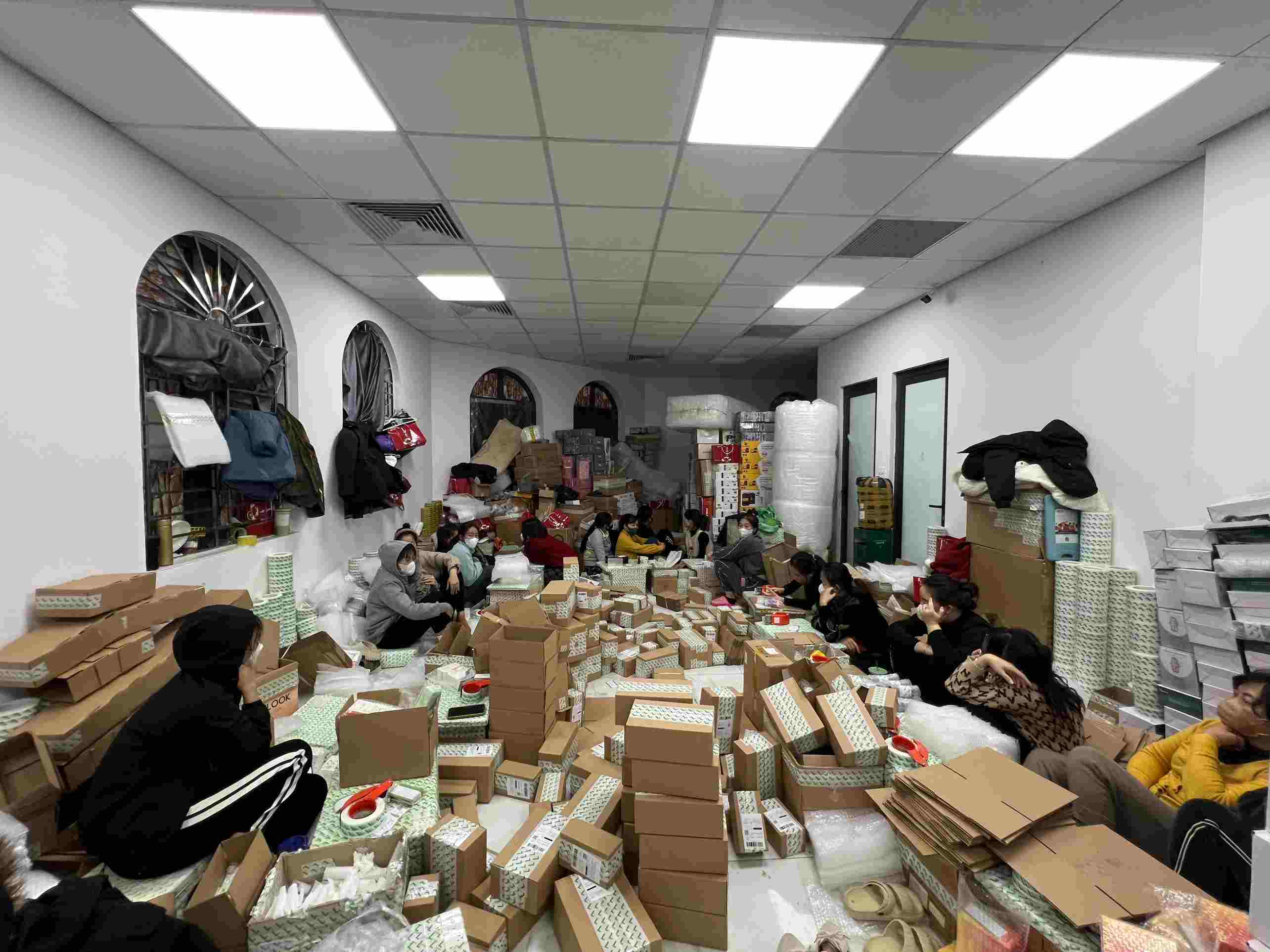 Tại thời điểm kiểm tra, trên 50 nhân viên có mặt ở các tầng đang thực hiện đóng gói, dán đơn lên các sản phẩm vừa được chốt đơn trong phiên livestream trước đó.