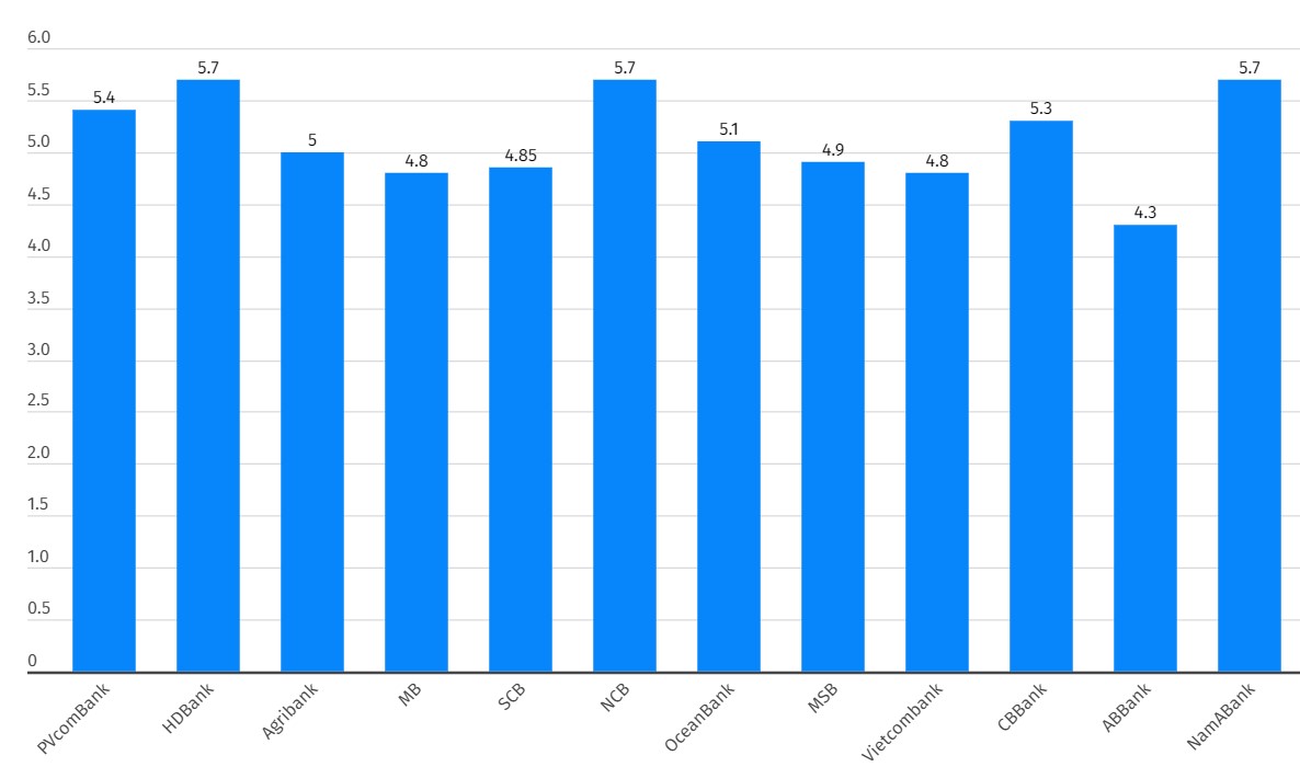 Ngoài ra bạn có thể tham khảo lãi suất 12 tháng một số ngân hàng khác thông qua biểu đồ dưới đây: