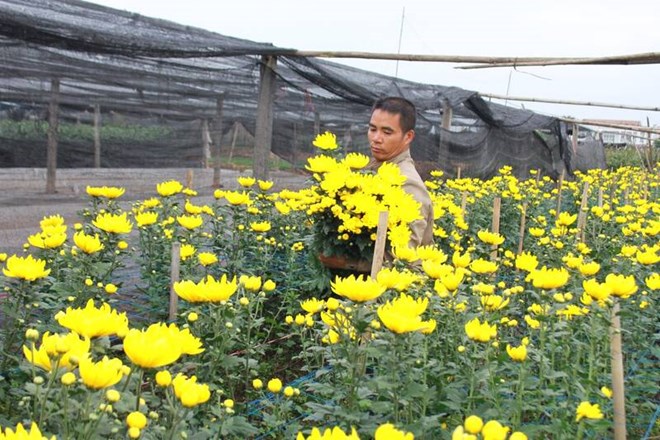 Nhiều hộ dân tại làng hoa Tây Tựu (quận Bắc Từ Liêm, Hà Nội) đang lo lắng do thời tiết năm nay không thuận lợi, các vườn hoa tại đây sẽ nở sớm trước Tết Nguyên đán.