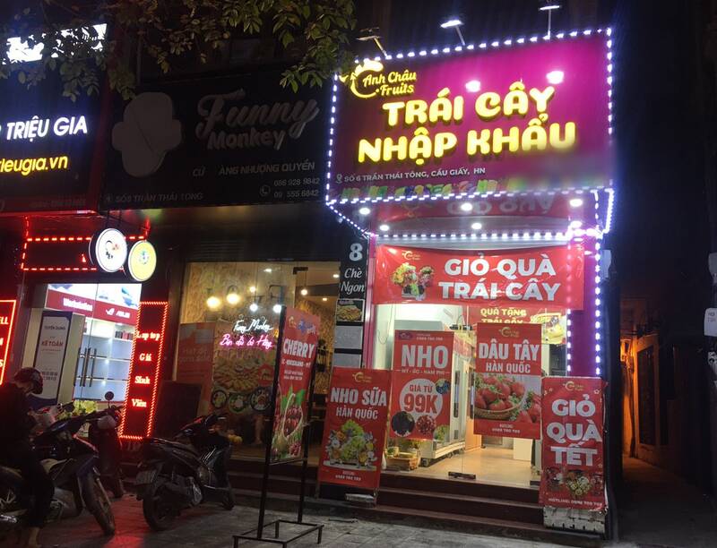 Nhiều cửa hàng kinh doanh trái cây nhập khẩu trên phố Trần Thái Tông (quận Cầu Giấy, Hà Nội) giảm giá khủng dịp cận Tết. Ảnh: Thu GiangVào cuối tháng 9.2023, lực lượng Quản lý thị trường TP Hà Nội đã tiến hành kiểm tra, phát hiện cửa hàng kinh doanh hoa quả tại số 97 đường Trần Duy Hưng (quận Cầu Giấy), thuộc Công ty TNHH Thương mại và Xuất nhập khẩu Kenlyver đã kinh doanh quả lê giả mạo xuất xứ Hàn Quốc.
