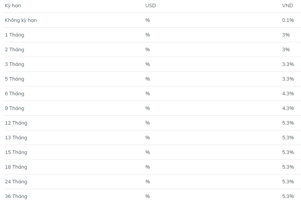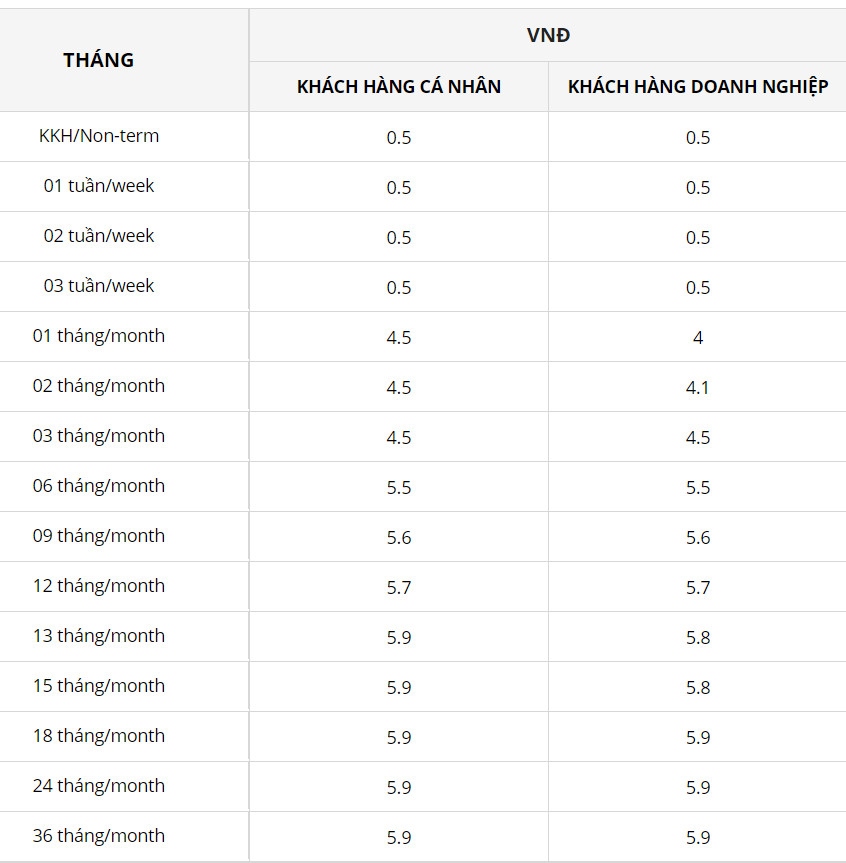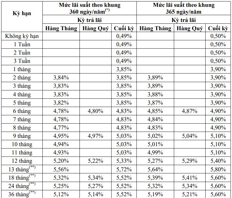* Thông tin về lãi suất chỉ mang tính chất tham khảo và có thể thay đổi trong từng thời kì. Vui lòng liên hệ điểm giao dịch ngân hàng gần nhất hoặc hotline để được tư vấn cụ thể.