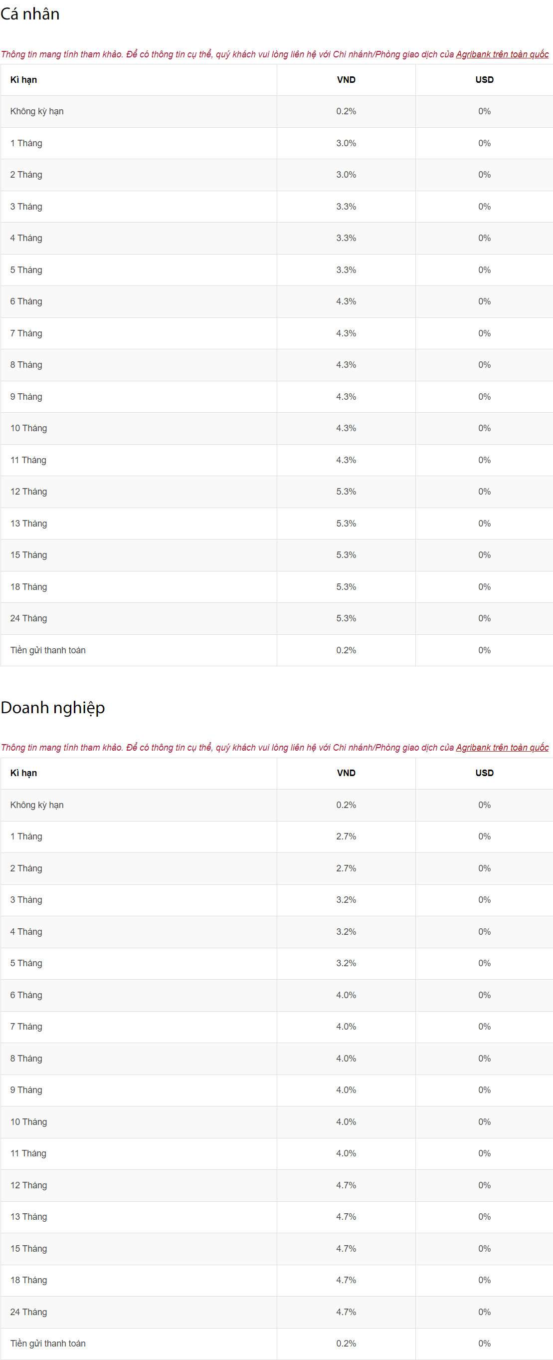 Biểu lãi suất của Agribank. Ảnh chụp màn hình