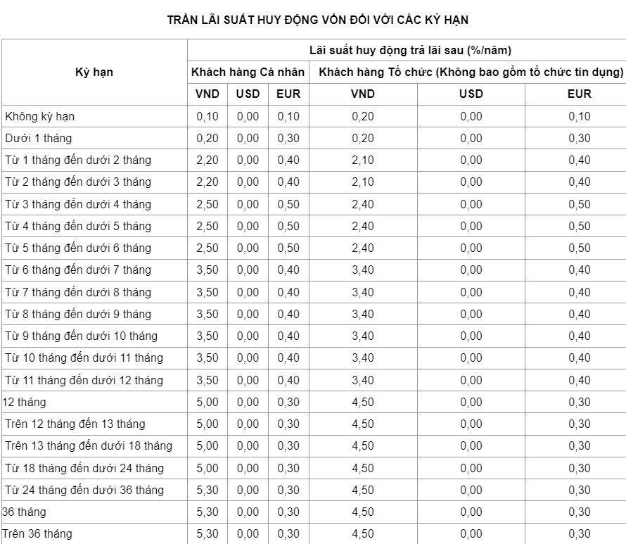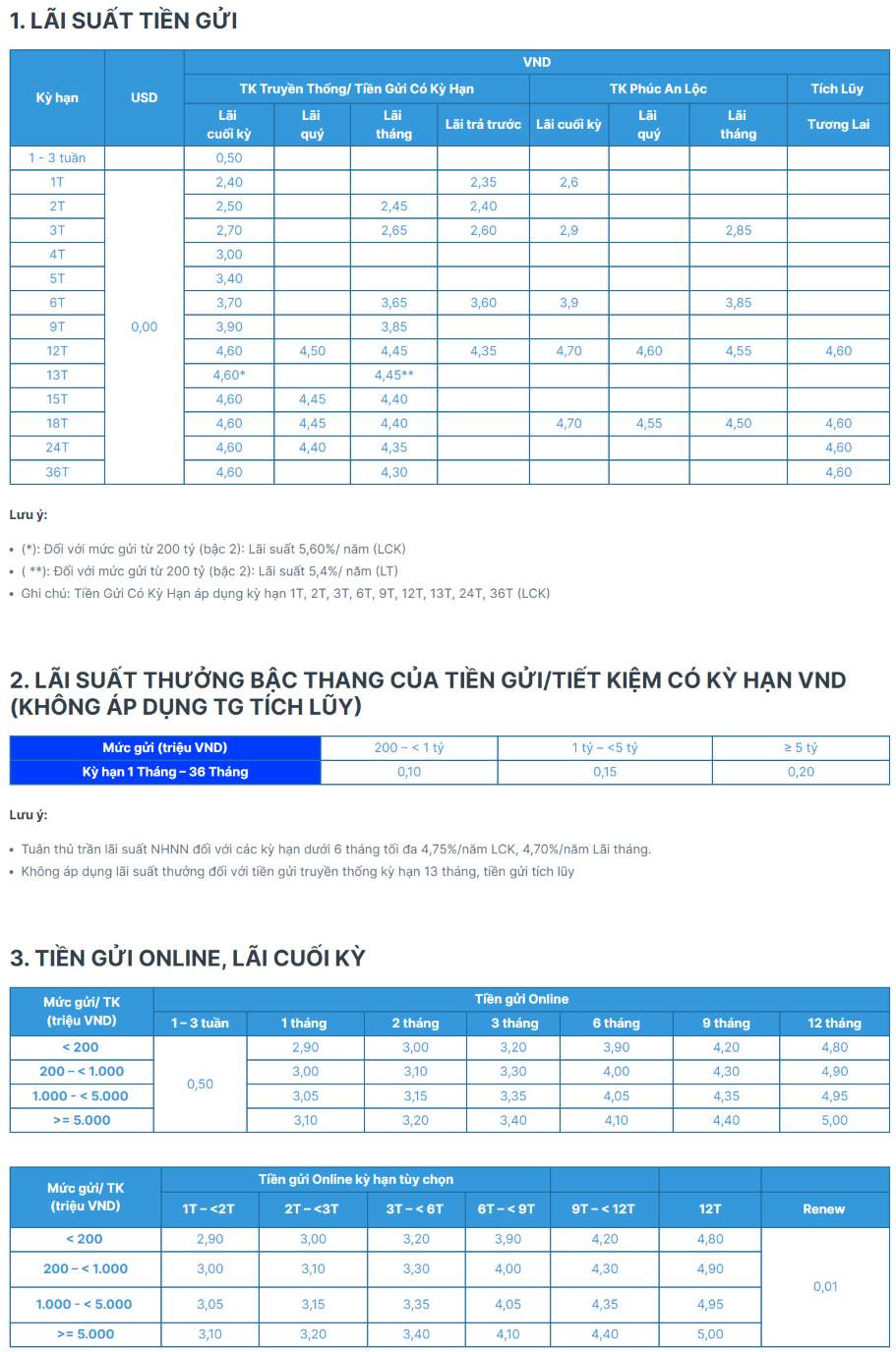 Thông tin về lãi suất chỉ mang tính chất tham khảo và có thể thay đổi trong từng thời kỳ. Vui lòng liên hệ điểm giao dịch ngân hàng gần nhất hoặc hotline để được tư vấn cụ thể.