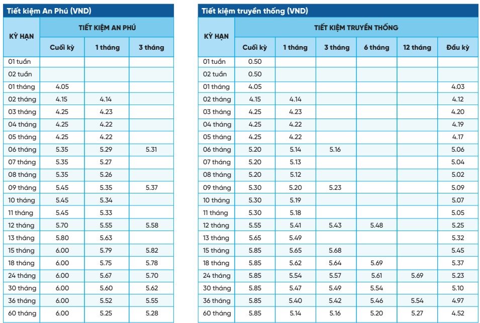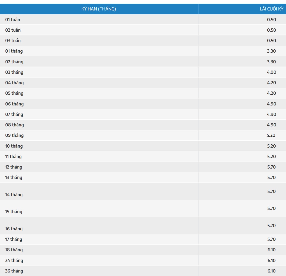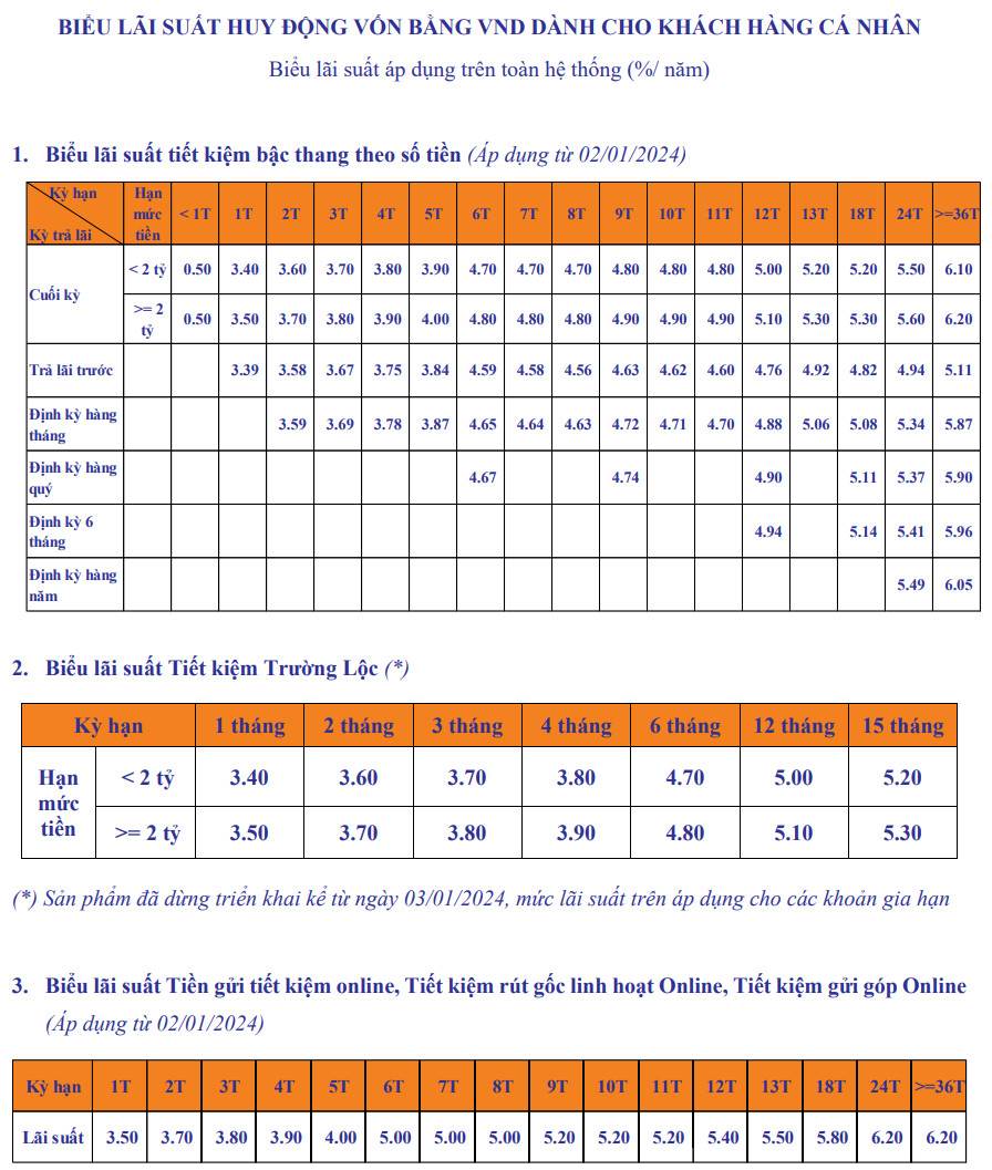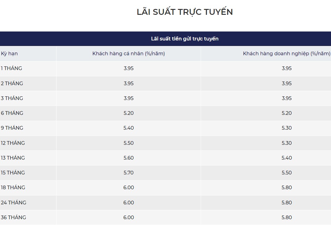 * Thông tin về lãi suất chỉ mang tính chất tham khảo và có thể thay đổi trong từng thời kì. Vui lòng liên hệ điểm giao dịch ngân hàng gần nhất hoặc hotline để được tư vấn cụ thể.