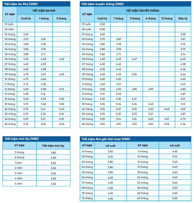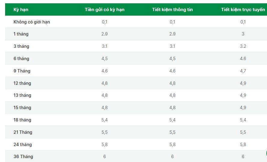 * Thông tin về lãi suất chỉ mang tính chất tham khảo và có thể thay đổi trong từng thời kỳ. Vui lòng liên hệ điểm giao dịch ngân hàng gần nhất hoặc hotline để được tư vấn cụ thể.