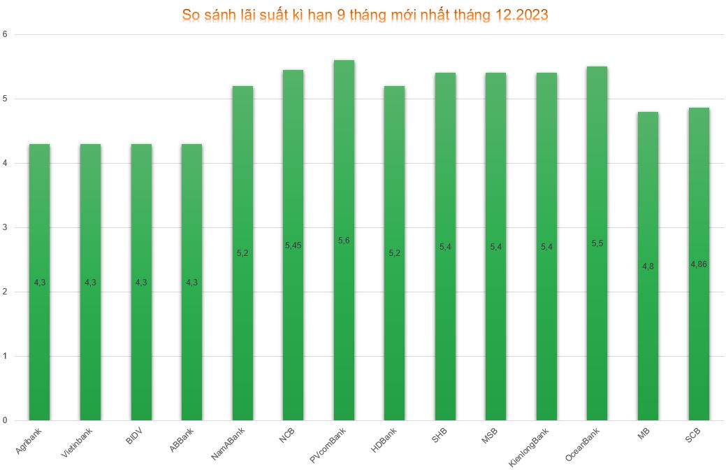 Lãi suất kì hạn 9 tháng cao nhất tháng 12?
