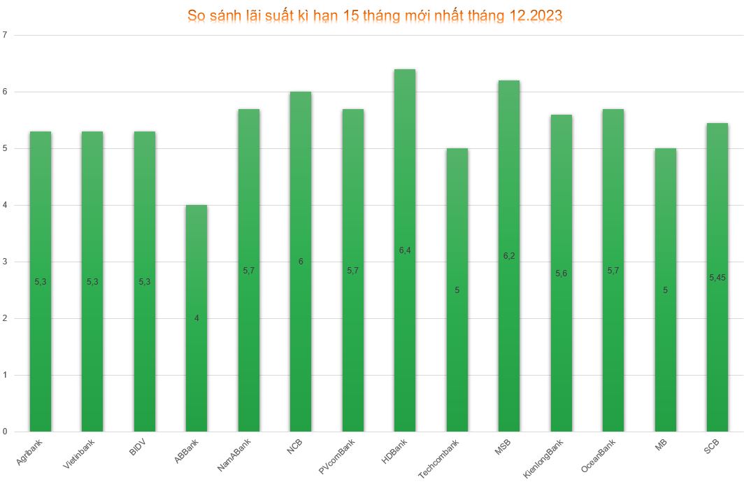 Ngoài ra, bạn đọc có thể tham khảo lãi suất kì hạn 15 tháng các ngân hàng khác qua biểu đồ dưới đây.