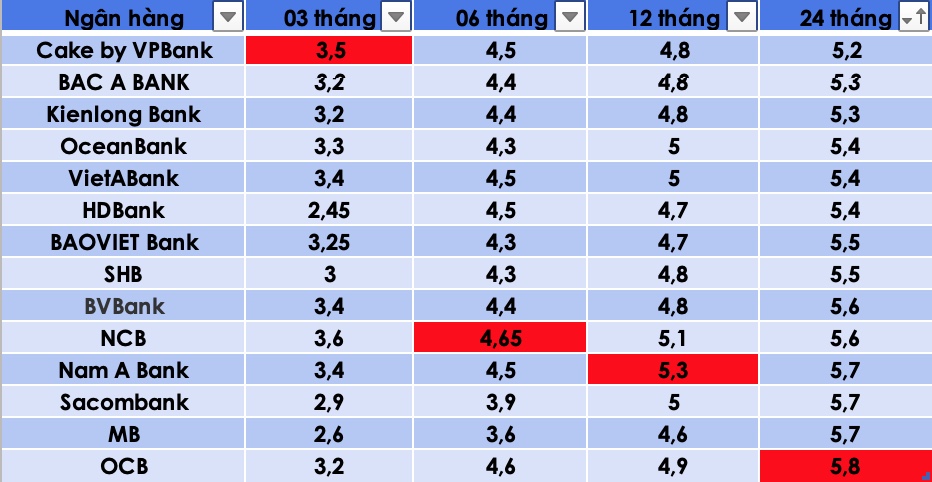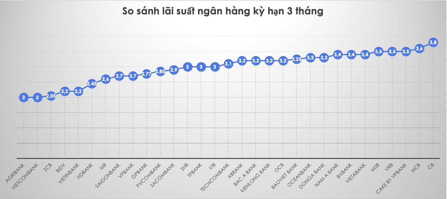 So sánh lãi suất ngân hàng cao nhất ở kỳ hạn 3 tháng