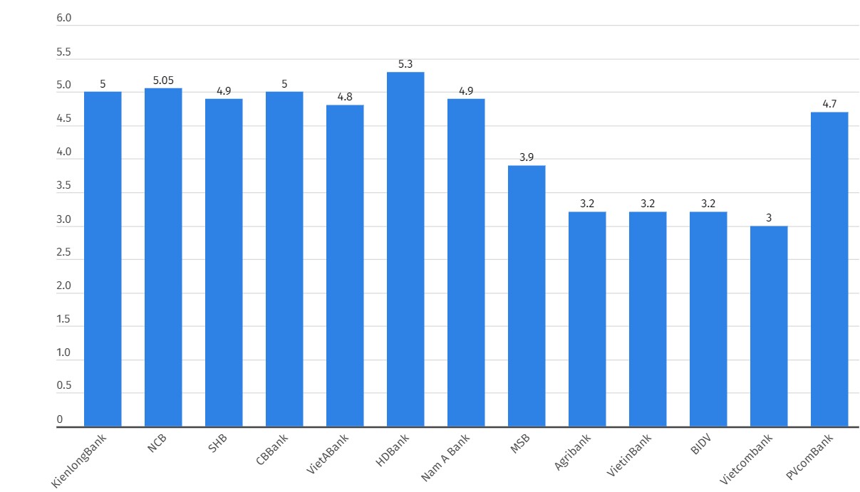 So sánh lãi suất ngân hàng kỳ hạn 6 tháng hôm nay. Biểu đồ: Khương DuySo sánh lãi suất ngân hàng kỳ hạn 9 tháng