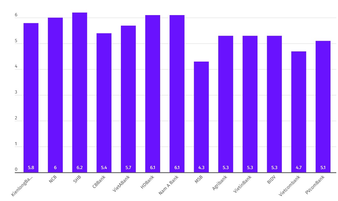 So sánh lãi suất ngân hàng kỳ hạn 1 tháng hôm nay. Biểu đồ: Khương DuySo sánh lãi suất kỳ hạn 6 tháng