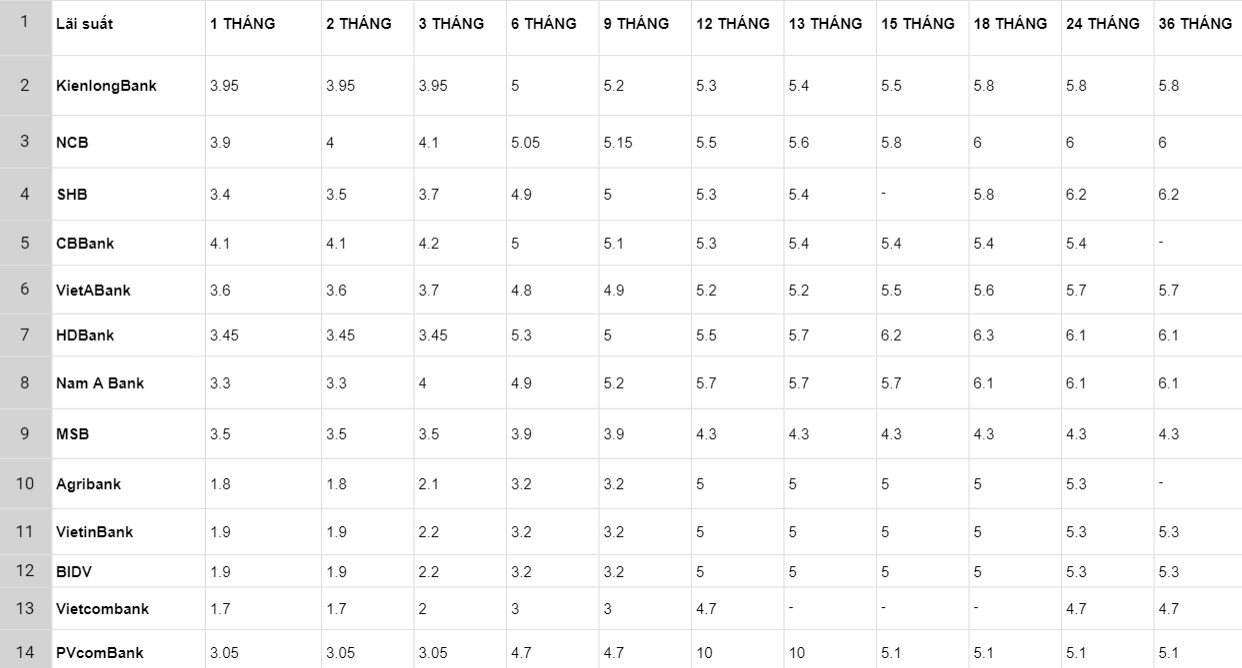 Ngân hàng nào có nhiều kỳ hạn lãi suất cao nhất ngày 20.1.2024