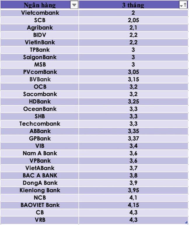 So sánh lãi suất ngân hàng cao nhất ở kỳ hạn 3 tháng