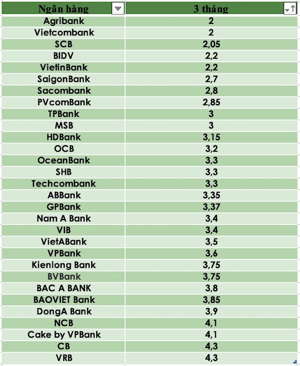 So sánh lãi suất ngân hàng cao nhất ở kỳ hạn 3 tháng