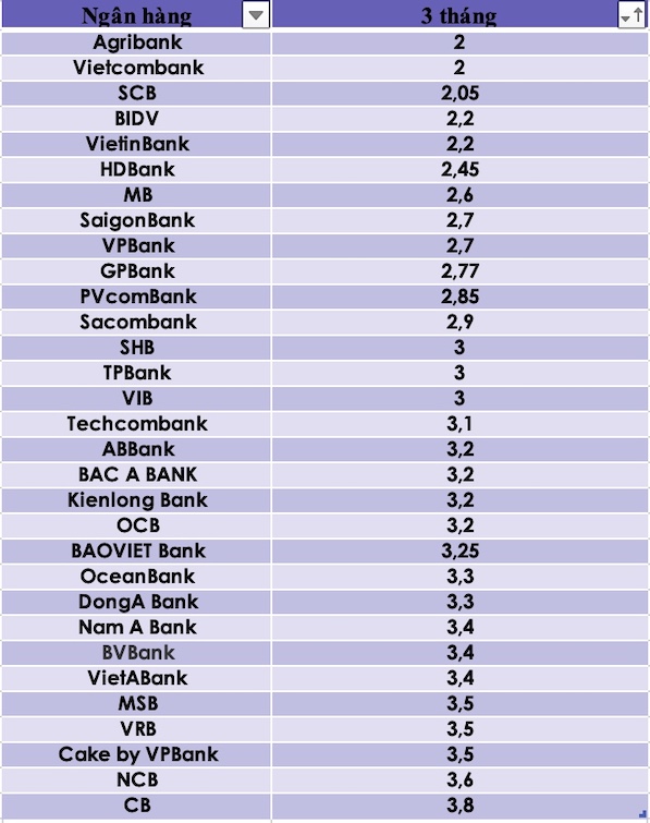 So sánh lãi suất ngân hàng cao nhất ở kỳ hạn 3 tháng: