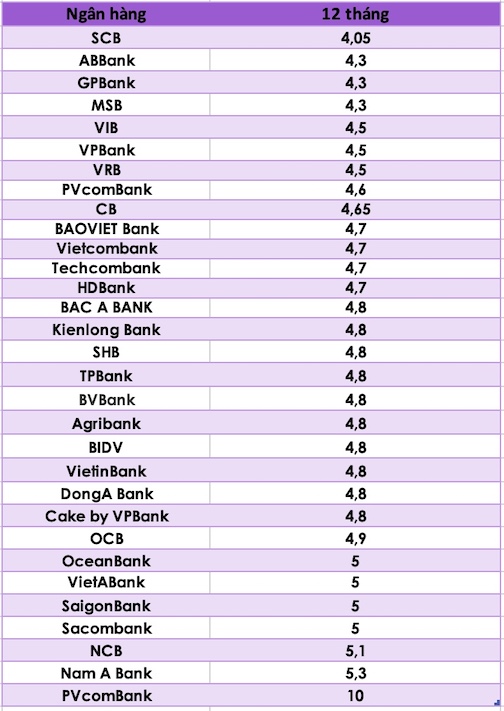 So sánh lãi suất ngân hàng cao nhất ở kỳ hạn 12 tháng. Đồ hoạ: Trà MyCập nhật mới nhất lãi suất ngân hàng Agribank, lãi suất Sacombank, lãi suất SCB, lãi suất Vietcombank... cao nhất kỳ hạn 24 tháng.