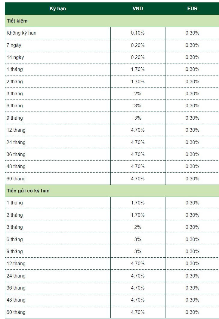 Trọn bộ lãi suất Vietcombank