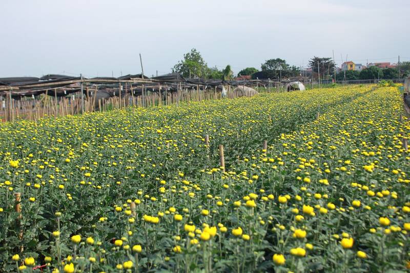 Những luống hoa nở sớm sẽ được người dân thu hoạch trước, giá dao động khoảng 100.000 - 120.000 đồng/50 bông. Ảnh: Lê Tâm Nguồn: https://laodong.vn/kinh-doanh/lang-hoa-lon-nhat-ha-noi-lo-mat-mua-dip-can-tet-1289641.ldo